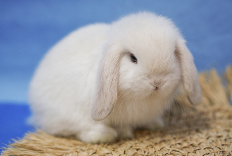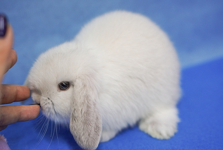 Mini Lop, белый пятнистый с голубыми глазами, самец
